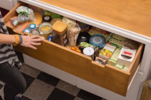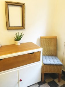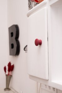 Az eredeti üvegét nem kapta vissza, de nem is igazán használható, valamint az átlátszó vagy nyitott tárolási módok sajnos mindig rendetlenséget mutatnak, ezért további fa felületet kapva került bele egy fiók is, ami egyébként rengeteg mindent elnyel.