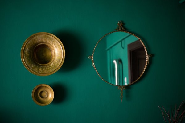 A kiegészítőket a megrendelő szerezte be, mert Ő maga is kincsvadászként nézelődik, rengeteg szép arany és réz tárgy, dekor cucc került be a házba, fillérekért. Én csak az elrendezésben segítettem, jó alapanyagokkal könnyű volt dolgozni!