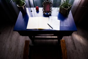 Az otthoni munkához vásárolt íróasztal is darabokban érkezett hozzánk, ahogy a többi bútor is mind új életet kezdett, megkapta az enteriőrbe illő színét, stílusát.
